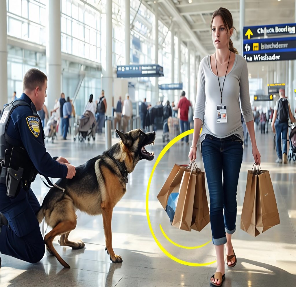 Una giovane donna stava camminando verso i controlli. Indossava un maglione largo, una giacca imbottita e si muoveva con la lentezza tipica delle donne in stato avanzato di gravidanza. Portava con sé solo una borsa a tracolla. Nessuno le diede peso. Fino a quando Thor, passando vicino a lei, si bloccò di colpo, ringhiò… e poi iniziò ad abbaiare furiosamente, puntando direttamente il suo muso verso la pancia della donna.