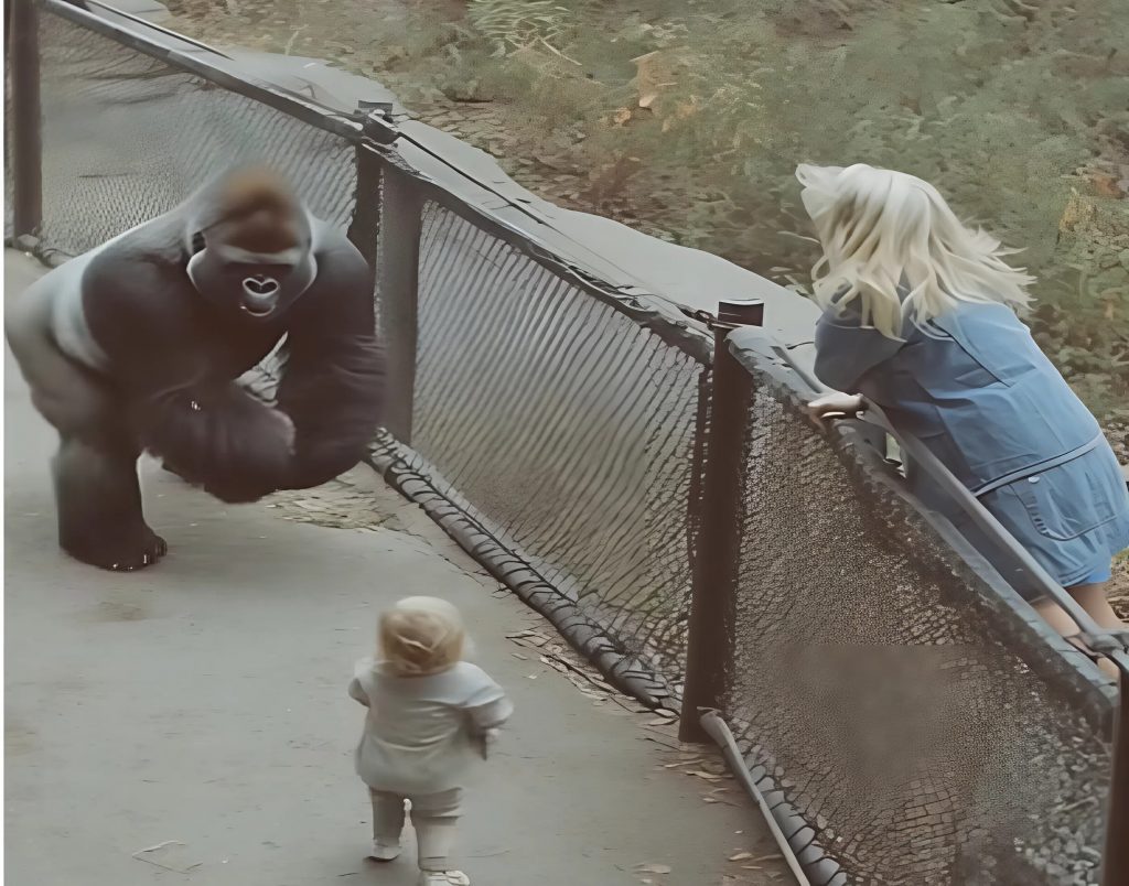Era un sabato pomeriggio, lo zoo era pieno. Famiglie, bambini, risate. Nessuno si aspettava un dramma. Ma un bambino di tre anni, distratto da un giocattolo, si è avvicinato troppo al recinto di una gorilla femmina di nome Mara. I genitori si sono voltati per un secondo — e quello è bastato. Il piccolo è caduto oltre la recinzione, dritto nel territorio di uno degli animali più forti e imprevedibili dello zoo.