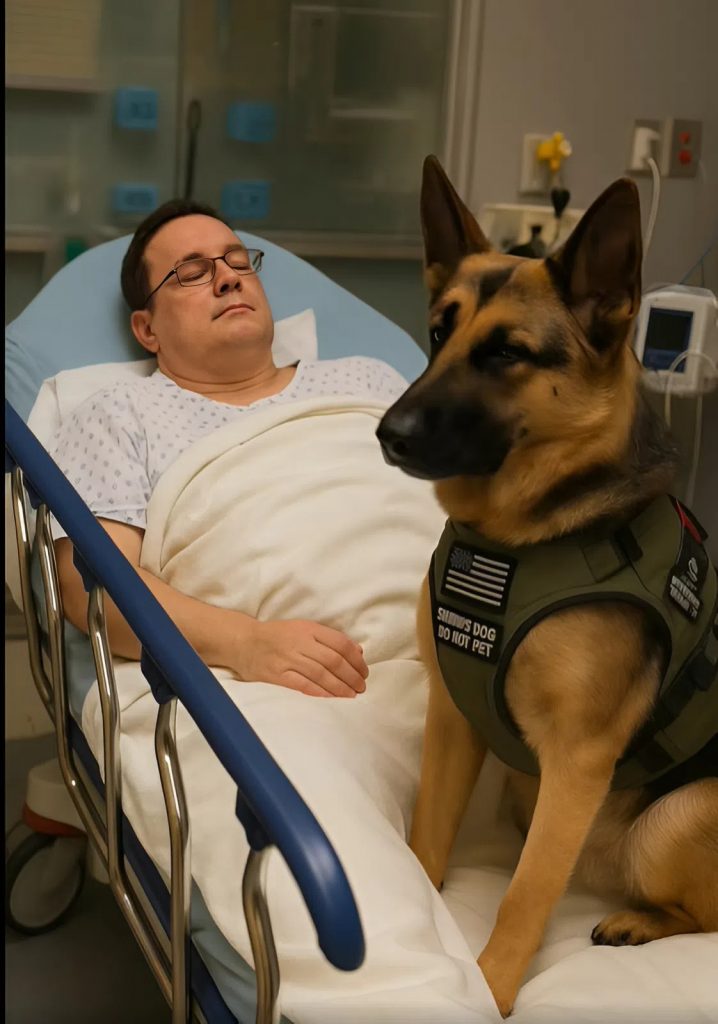 Poi, con un salto improvviso, salì sul letto d’ospedale. Iniziò a spingere il petto di Alex con il muso, a strattonargli la manica con i denti. I suoi occhi erano pieni di paura — ma anche di determinazione.