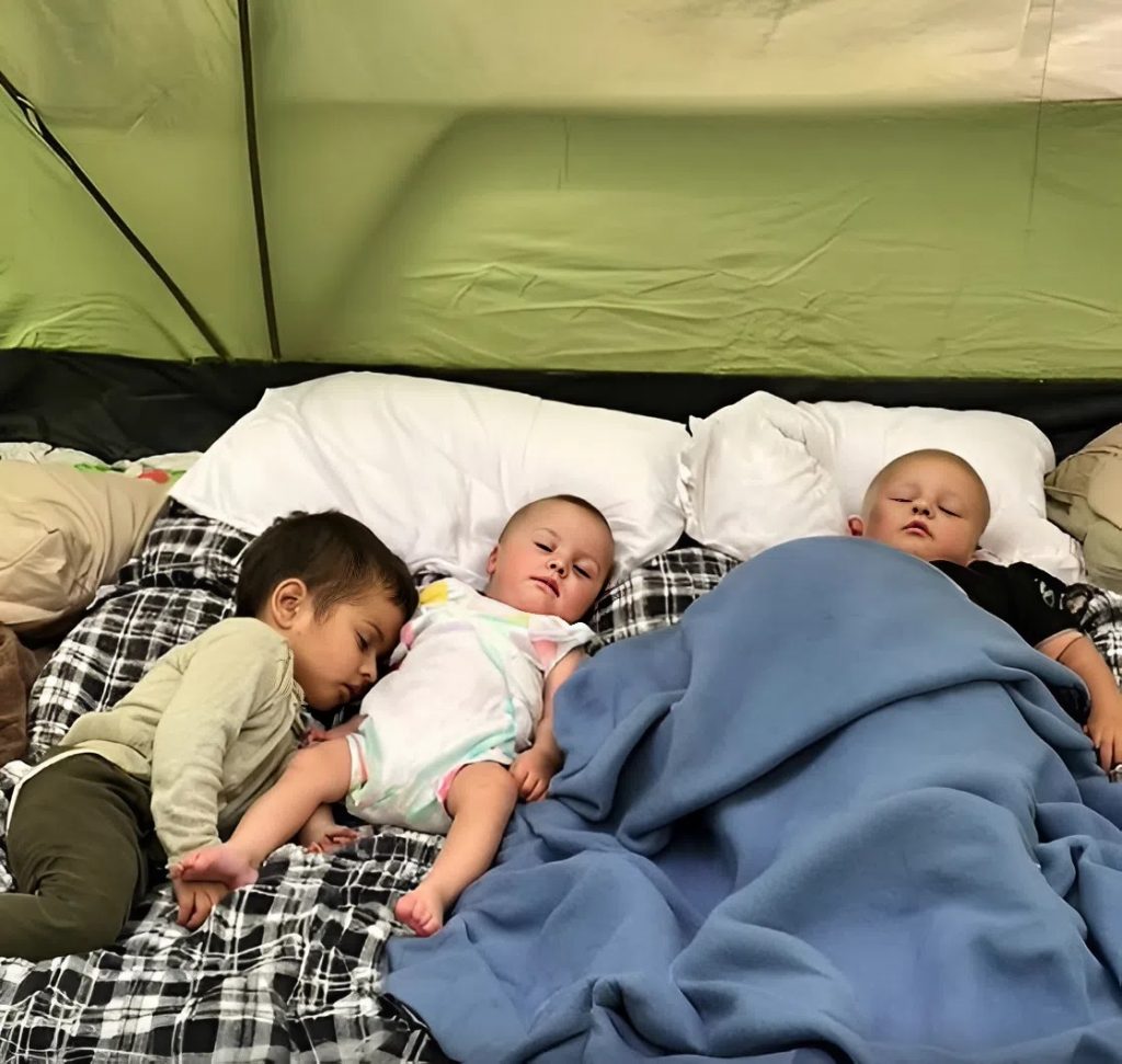He watched his three sons sleeping, curled up under a thin blue blanket like it was the softest thing in the world. For them, it was a camping trip. For him — it was survival.