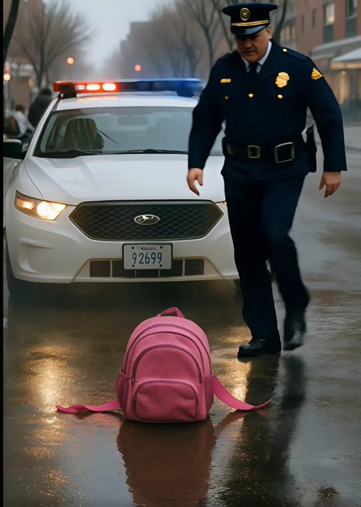 Durante la fuga, la bambina si tolse lo zainetto rosa e lo lasciò cadere sull’asfalto bagnato, scomparendo nell’oscurità. Il sergente si chinò a raccoglierlo. Era bagnato fradicio, ma pesante — dentro c’era qualcosa di importante.