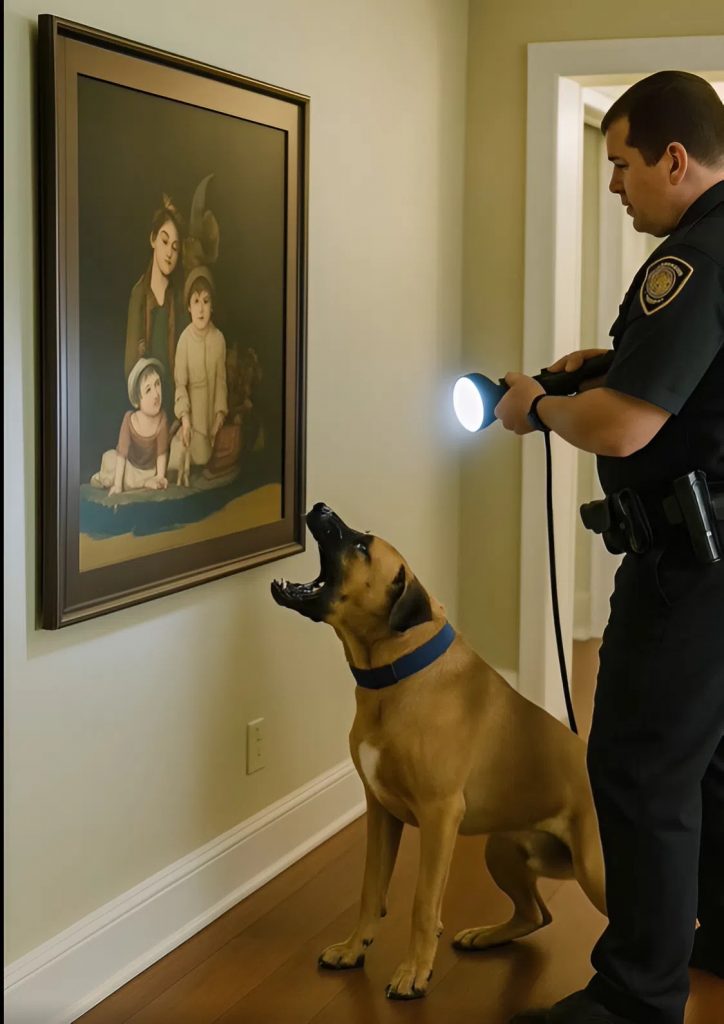 Mentre il collega di Sidorov controllava il piano superiore, lui e Ralph cominciarono dal corridoio al piano terra. Ed è lì che accadde qualcosa di inaspettato. Ralph si irrigidì. I peli sulla schiena si alzarono, e il cane cominciò a ringhiare. Poi, improvvisamente, abbaiò con insistenza, fissando un grande quadro appeso alla parete.