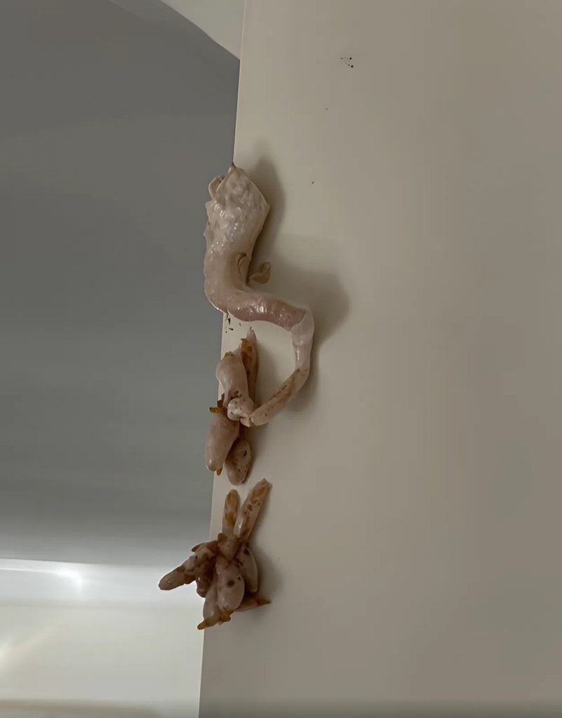 Ho preso i guanti, un coltello da cucina e la torcia del telefono. Lentamente, ho rimosso parte della vernice e dell’intonaco attorno alla fessura. Pezzi di muro si staccavano come pelle secca. La massa rosa colava ancora. E poi… si è mossa.