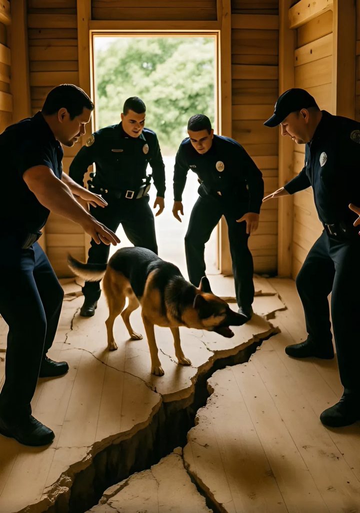Gray si immobilizzò. Poi ringhiò. Poi abbaiò — forte, disperato, insistente. Corse verso il bordo della fossa e iniziò a graffiare con le zampe il pavimento. Non distoglieva lo sguardo dall’oscurità.
