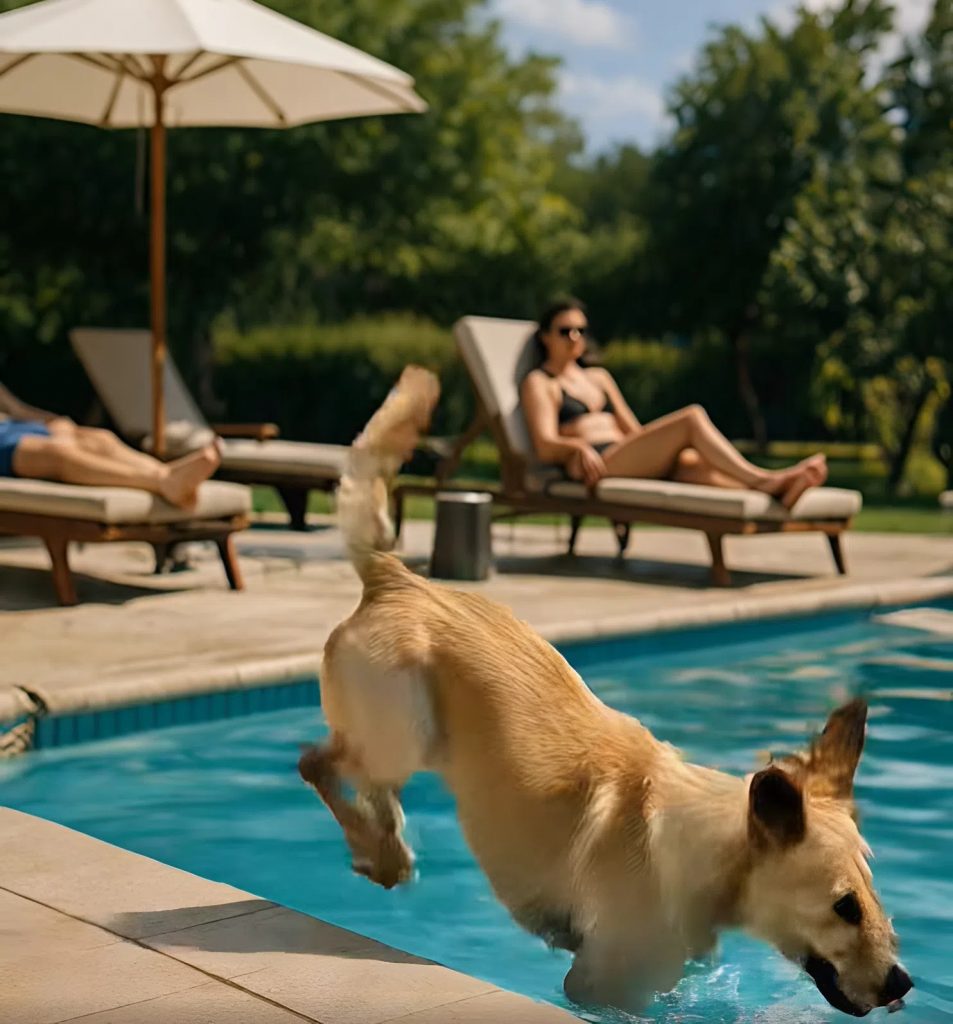 Un cane. Grande, dal pelo chiaro, bagnato, con lo sguardo allarmato e il corpo teso come una corda. Si è avvicinato al bordo della piscina, si è fermato e ha cominciato ad abbaiare. Forte. Insistente. Poi ha iniziato a muoversi nervosamente avanti e indietro, fissando l’acqua.