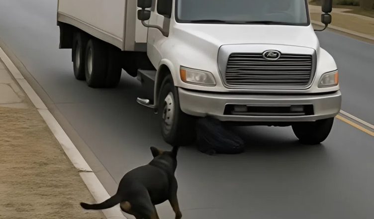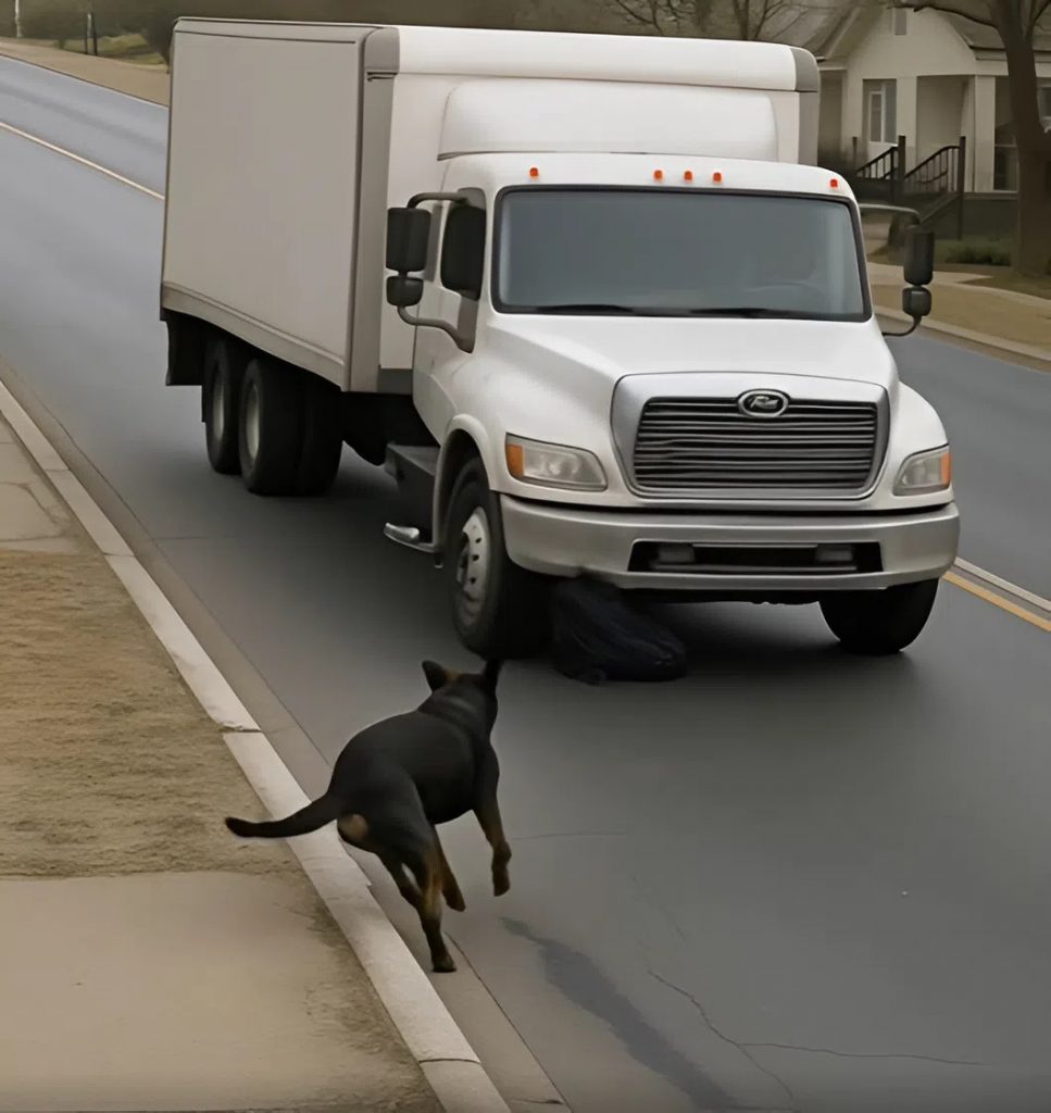 Ma il cane non fuggì. Corse attorno al camion e si fermò accanto a un oggetto scuro e strano, proprio in mezzo alla carreggiata. Abbaiava con insistenza, quasi volesse richiamare l’attenzione. Sergey, ancora scosso dall’arresto improvviso, scese dalla cabina e si avvicinò all’animale.