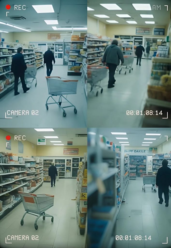 La mattina dopo sono arrivato presto e ho guardato la registrazione. Per ore, niente — solo il negozio vuoto e qualche ombra della luce di sicurezza. Poi, intorno alle tre di notte, un movimento.
