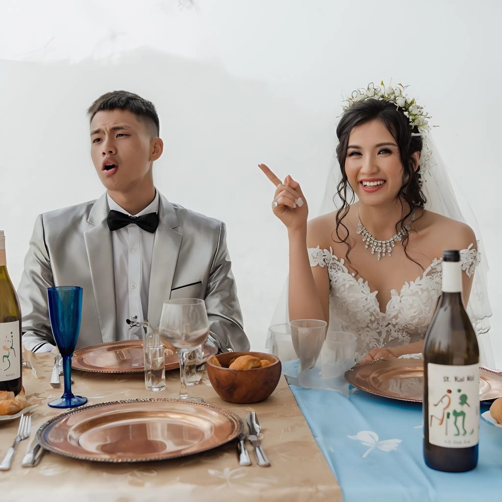 La sposa si coprì il volto con le mani, divisa tra sollievo e imbarazzo. Lo sposo rise nervosamente, stringendola a sé.