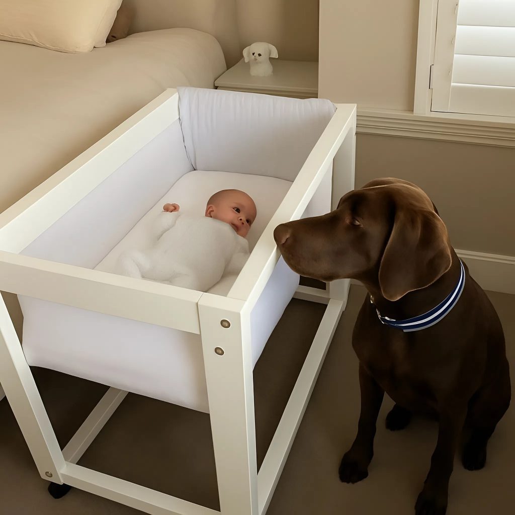 La luce si accese di colpo, rivelando un’immagine che pareva un incubo: il cane scuoteva con forza la sponda della culla, le zampe scivolavano sul pavimento, gli occhi brillavano nell’oscurità. Per un istante, i genitori ebbero la certezza di trovarsi davanti a un predatore. Senza esitare si lanciarono verso la culla, pronti a strappare via l’animale con ogni mezzo.