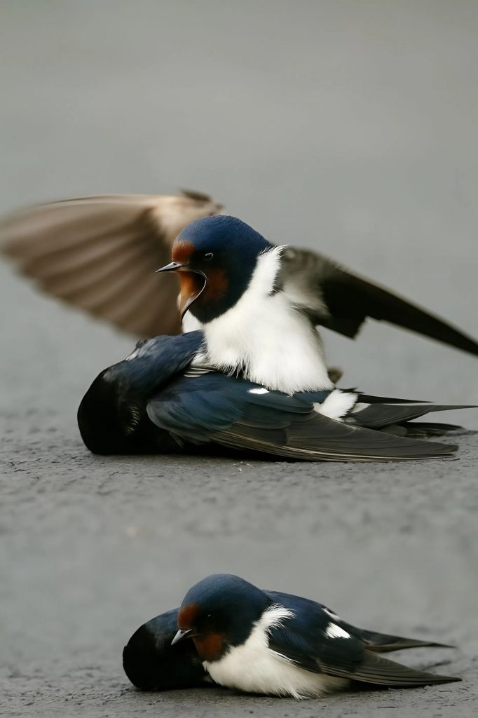 Quando qualcuno tentò di avvicinarsi per spostare il corpo, la rondine viva si sollevò in volo, compiendo un cerchio nervoso, poi tornò giù per proteggere ciò che restava. Non lo permetteva. Non voleva che nessuno lo toccasse.