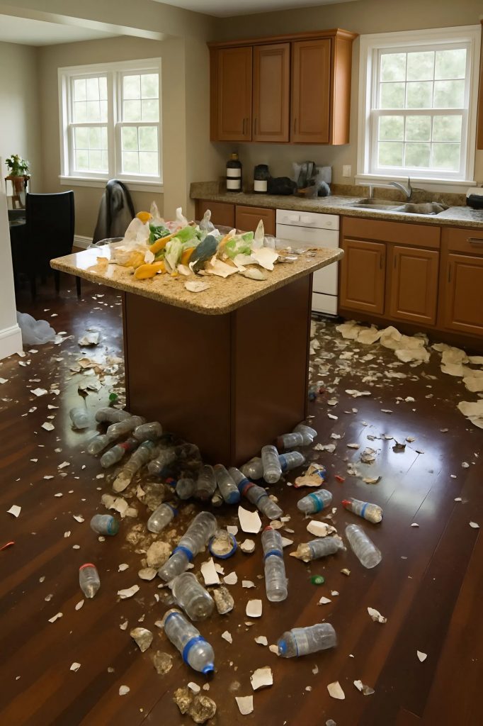 Quando sono entrata in casa sua, mi è sembrato di varcare un campo di battaglia: bottiglie vuote, resti di cibo, tappeti appiccicosi, piatti accatastati. Ho lavorato senza tregua due giorni interi: lavare, strofinare, disinfettare, buttare sacchi di spazzatura. La schiena mi faceva male, le mani erano piene di vesciche, ma pensavo ai miei figli e continuavo.
