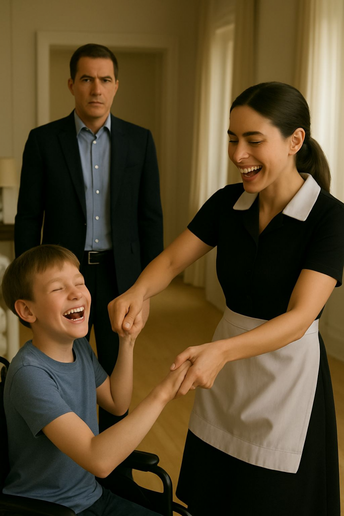 Nell’immensa appartamento parigino di Julien Morel regnava da anni un silenzio di pietra. Le stanze, ampie e luminose, erano diventate fredde e vuote, come un museo abbandonato. Da quando suo figlio Leo, appena nove anni, era rimasto vittima di un terribile incidente, la vita aveva smesso di fluire. Immobilizzato su una sedia a rotelle, incapace di parlare o muovere un dito, il bambino era stato dichiarato senza speranza dai medici. Per Julien, nonostante le cure costose e gli sforzi disperati, non restava che accettare l’idea che suo figlio vivesse dietro un muro invisibile, inaccessibile persino all’amore paterno.