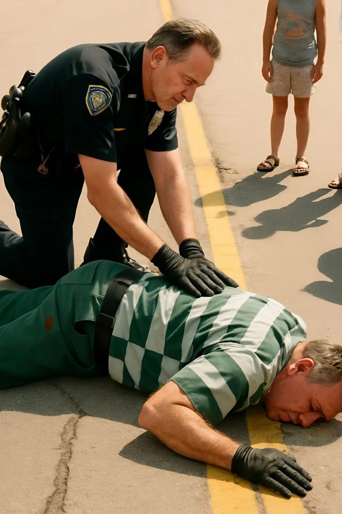 L’agente Kowalski — giovane, sicuro, con quell’aria di chi porta l’autorità come una corazza — stava sopra di lui, abbaiando: «Resta giù, vecchio!» abbastanza forte da far voltare i passanti, abbastanza forte perché i bambini in auto lo sentissero.