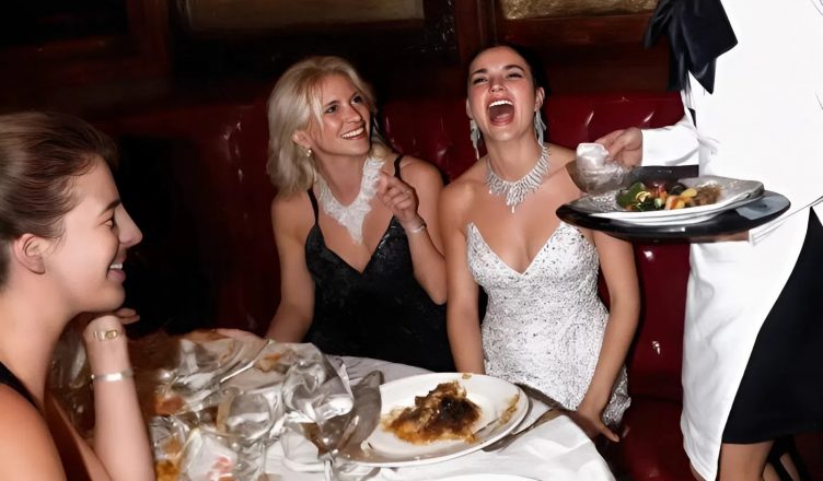 Al tavolo accanto sedevano tre donne vestite con abiti firmati, adornate di gioielli che brillavano sotto i lampadari. Ridevano forte, con quella sicurezza arrogante che pretende attenzione. Ma quando una giovane cameriera si è avvicinata per servire i piatti, la risata è cambiata tono.