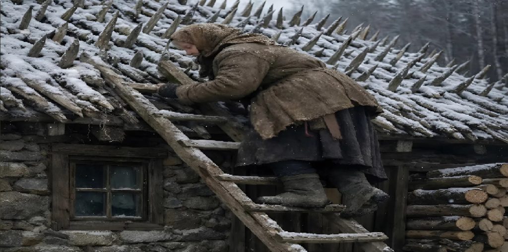Pourtant, personne ne voyait le soin qu’elle apportait à son travail. Chaque pieu était choisi avec attention. Le bois devait être sec, solide, résistant. Elle taillait les pointes avec précision, calculait les angles, vérifiait la stabilité. Rien n’était laissé au hasard. Elle connaissait sa toiture dans les moindres détails — les endroits fragiles, les poutres à renforcer, les zones à surveiller.