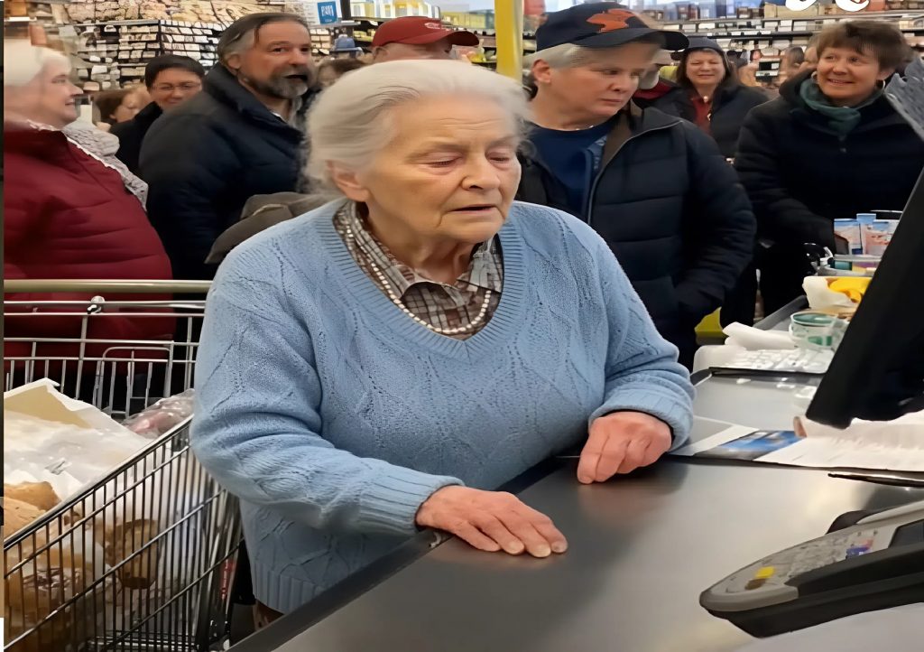 Devant nous se tenait une dame âgée, probablement proche des quatre-vingts ans. Petite, soigneusement habillée, les mains fines mais tremblantes. Son chariot ne contenait que l’essentiel : du pain, du lait, une soupe en conserve, un sac de pommes de terre et une tarte aux pommes. Rien de superflu. Juste le nécessaire pour tenir quelques jours.