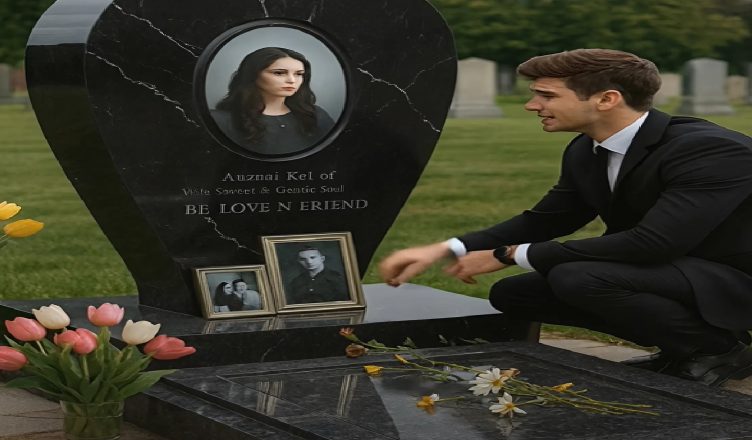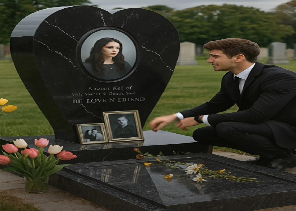 Devant lui se dressait une grande pierre noire en forme de cœur. Sa photographie était gravée au centre : le même sourire doux, le même regard lumineux. Des fleurs fraîches entouraient la tombe. Quelqu’un venait souvent.