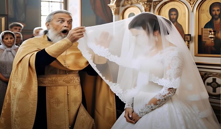 Un silence pesant tomba sur l’église. On entendait seulement le léger crépitement des cierges. Lilia resta immobile devant l’autel, le visage pâle sous la lumière des bougies. Dmitri, la main encore levée après avoir relevé le voile, fixait le prêtre sans comprendre. Les invités échangèrent des regards inquiets, murmurant à voix basse.