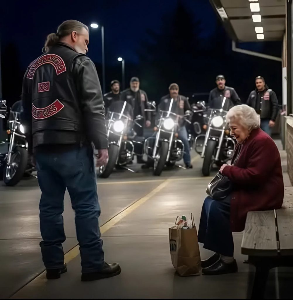 Bear poussa un profond soupir et détourna le regard pendant un instant. Les autres motards restaient silencieux autour d’eux, comme s’ils montaient la garde. Les moteurs de leurs motos crépitaient encore doucement dans l’air froid du soir.