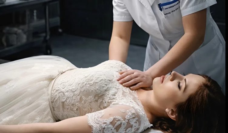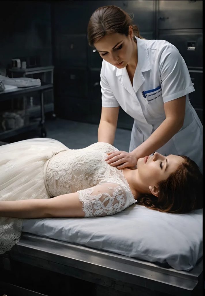 Quand les proches furent emmenés à l’extérieur, le corps de la mariée resta dans un box. Le médecin vérifia rapidement les documents et déclara :