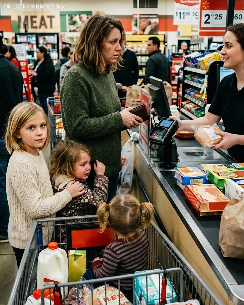 Devant moi se tenait une femme. Trois enfants à ses côtés. L’un était assis dans le chariot, le deuxième s’accrochait à sa manche, et le troisième, le plus âgé, essayait de se comporter comme un adulte — mais dans ses yeux, on voyait clairement la peur.