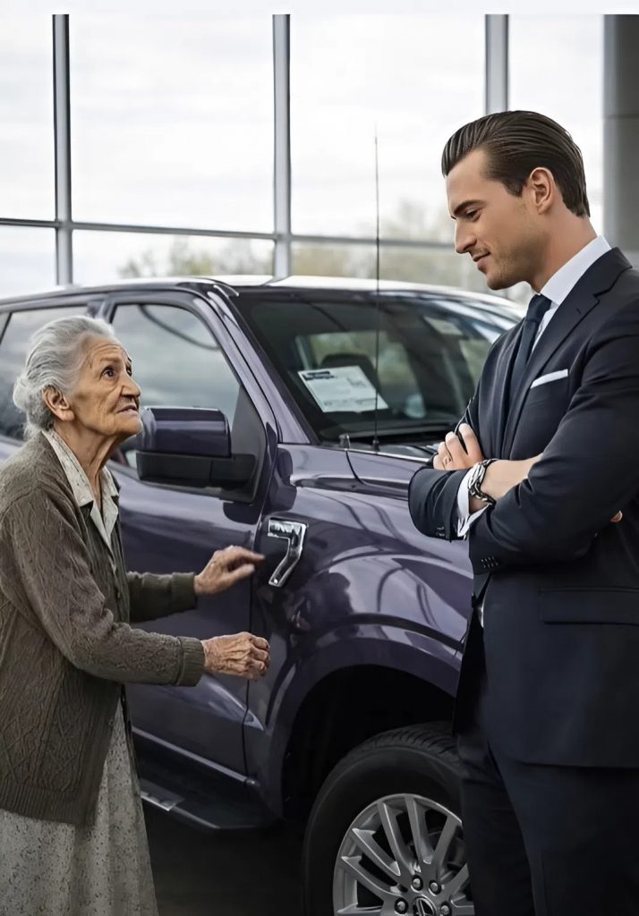 Le vendeur avala sa salive et fit signe à l’accueil. Quelques minutes plus tard, le propriétaire du showroom arriva — un homme sûr de lui, habitué à tout maîtriser. Il balaya la salle du regard : les employés tendus, les clients déconcertés… puis s’arrêta sur la vieille dame.