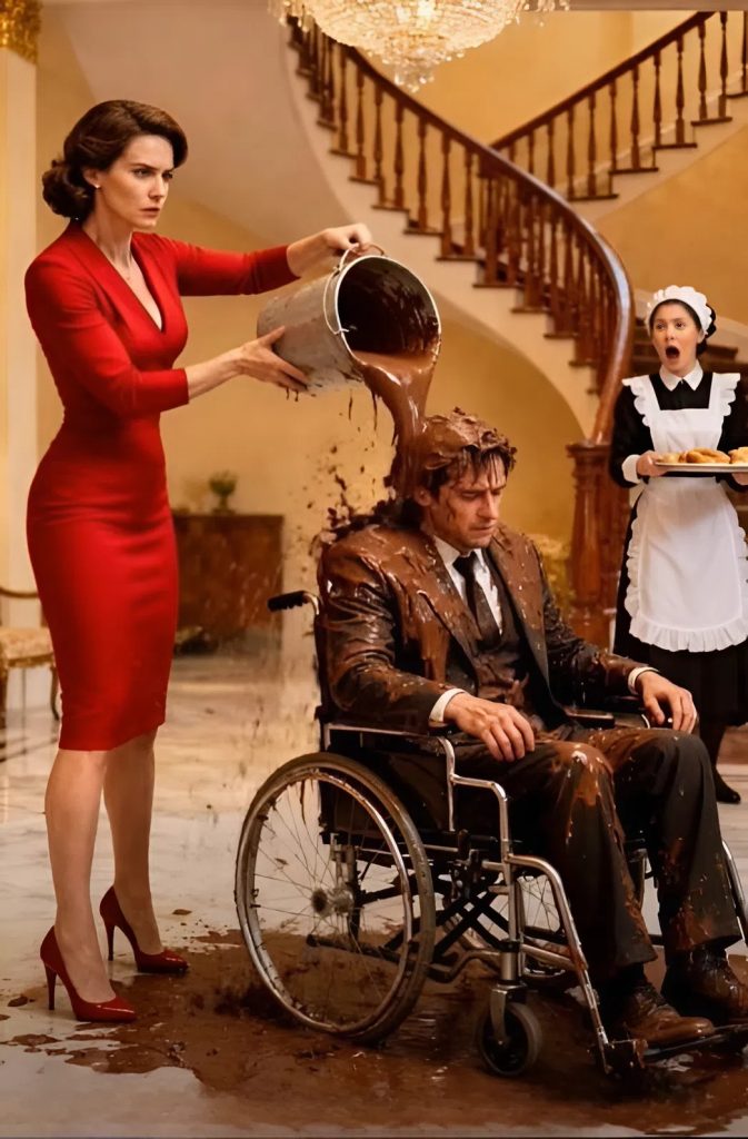 Dans le grand salon, elle posa les derniers documents, s’approcha de lui et saisit un seau rempli de peinture sombre. Son regard était glacial, dépourvu de toute compassion.