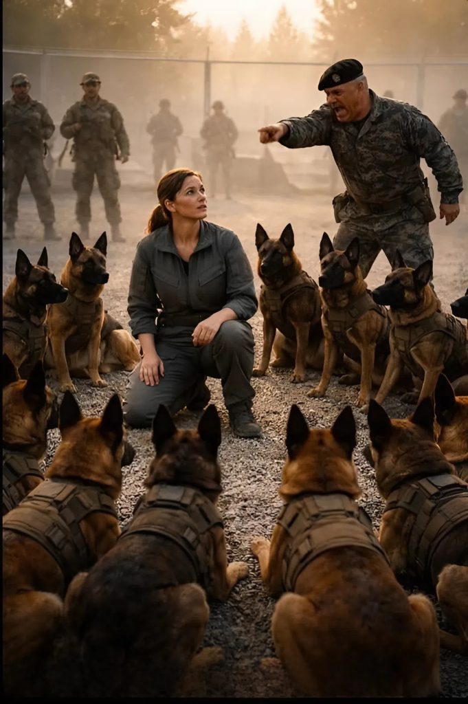 L’un des malinois s’approcha lentement de la femme et s’assit à ses côtés, comme pour la protéger. Un autre se plaça devant elle, tourné vers l’officier. Un troisième contourna le cercle et s’immobilisa derrière elle, surveillant les alentours.