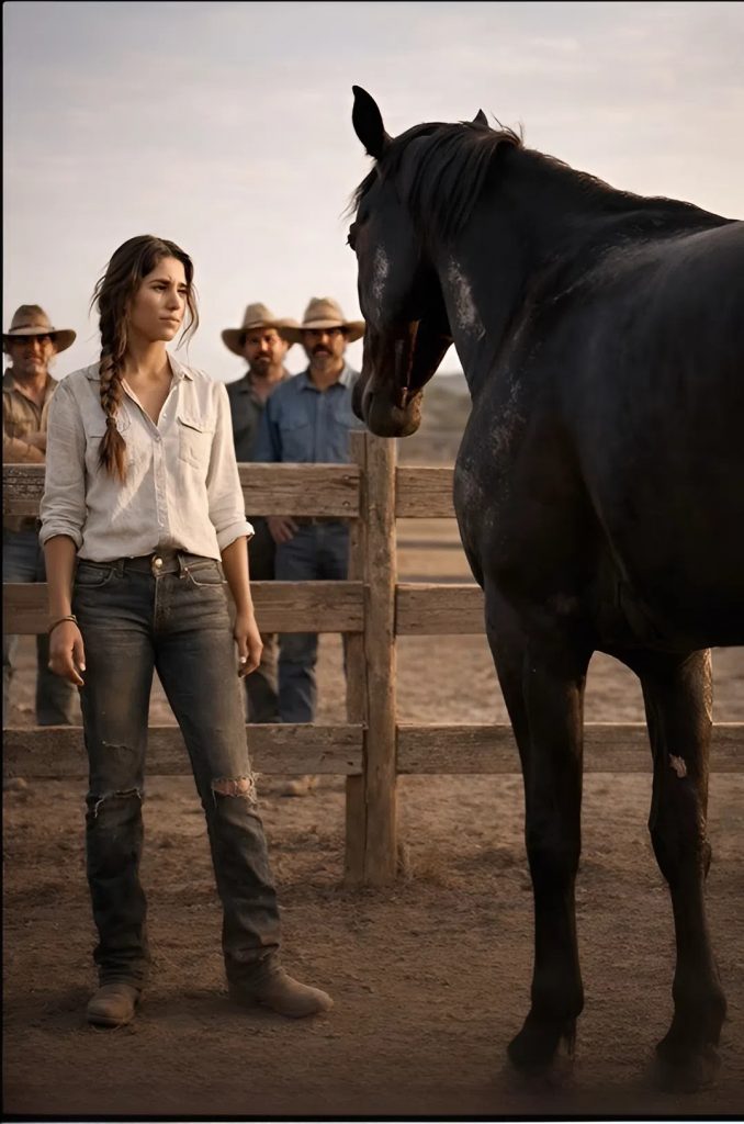 Сertains reculèrent instinctivement, comme s’ils avaient peur de briser cet instant fragile. Sombra — ce cheval indomptable qui, quelques minutes plus tôt, détruisait tout sur son passage — restait immobile.