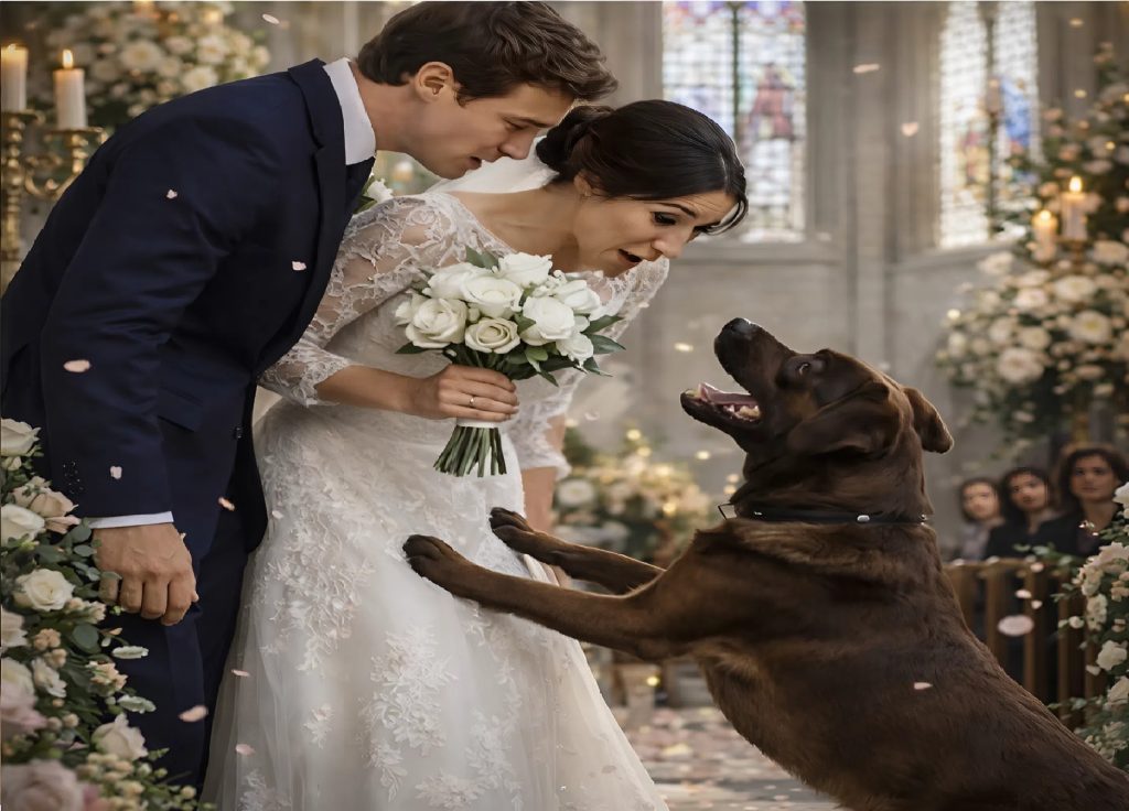 La mariée resta figée, le visage pâle, les yeux grands ouverts. Lentement, elle baissa le regard vers le chien.
