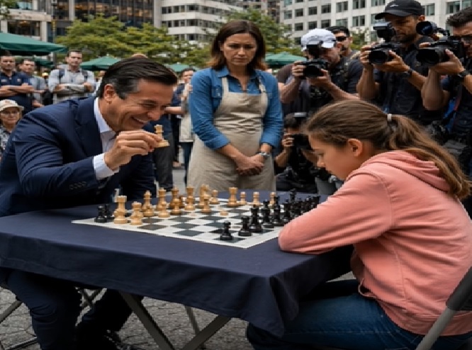 Au centre de la foule se tenait le célèbre milliardaire Arsen Markov. Depuis longtemps, son nom n’était plus associé au respect, mais à la peur. Il achetait tout : des entreprises, de l’influence, le silence des gens, et même les victoires des autres. Ce jour-là, il avait préparé un nouveau spectacle humiliant : une immense table, un échiquier luxueux fabriqué à la main, des caméras de journalistes, des gardes autour de lui et une mallette remplie d’argent, posée bien en évidence pour que chacun voie la somme promise.